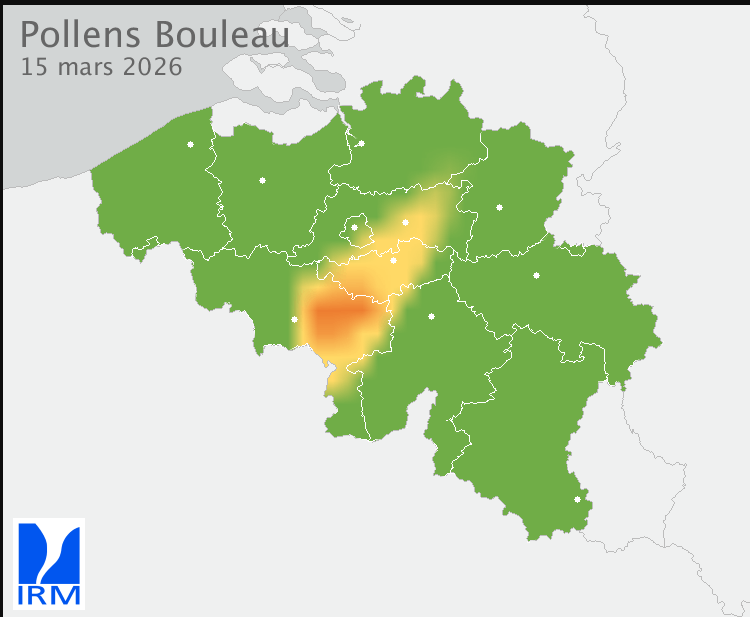 Les premiers grains de pollen de bouleau ont été détectés début mars. L’IRM signale que la douceur de la fin d’hiver pourrait entraîner une floraison plus précoce que la moyenne.